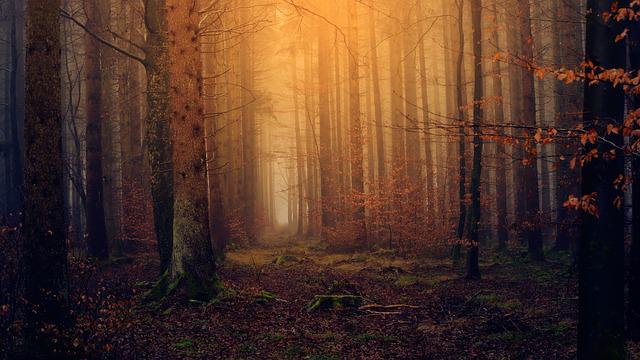 fall forest filled with light