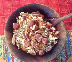 parsnip, burdock, onion porridge w flax, goji, nuts-tn